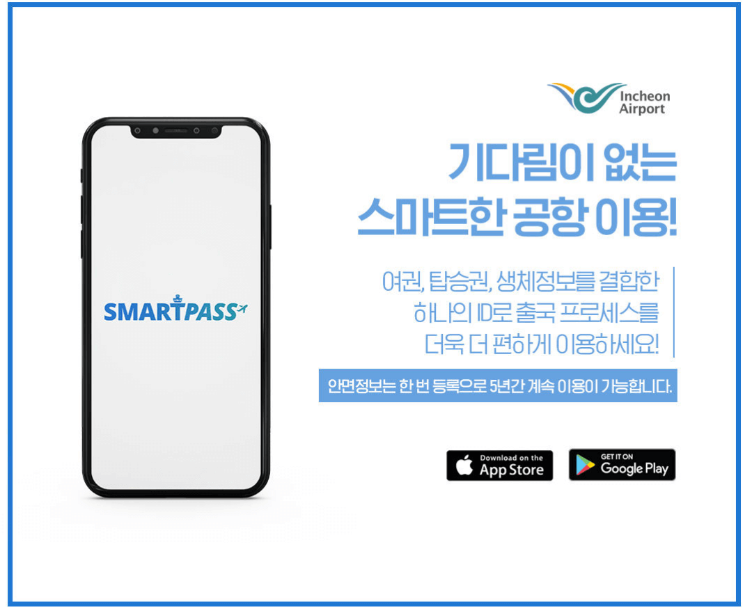 스마트패스는 여권, 안면정보, 탑승권 등을 미리 사전 등록한 후, 공항에서 출국장 및 탑승게이트 등 출국 프로세스를 얼굴인증만으로 간편하게 통과할 수 있습니다.