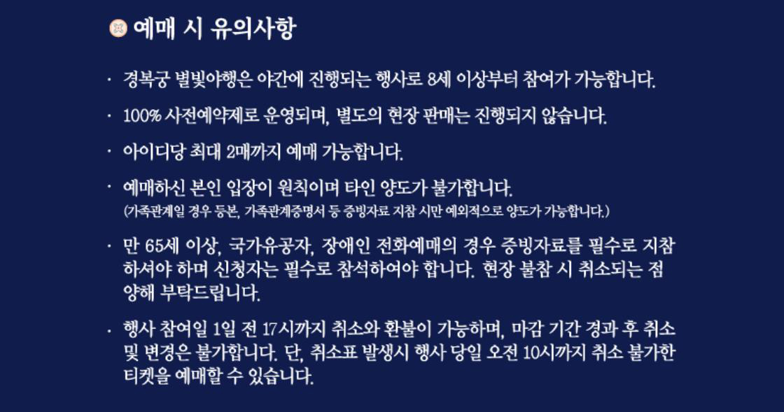 - <경복궁 별빛야행>은 지인 간의 양도가 불가능 합니다.